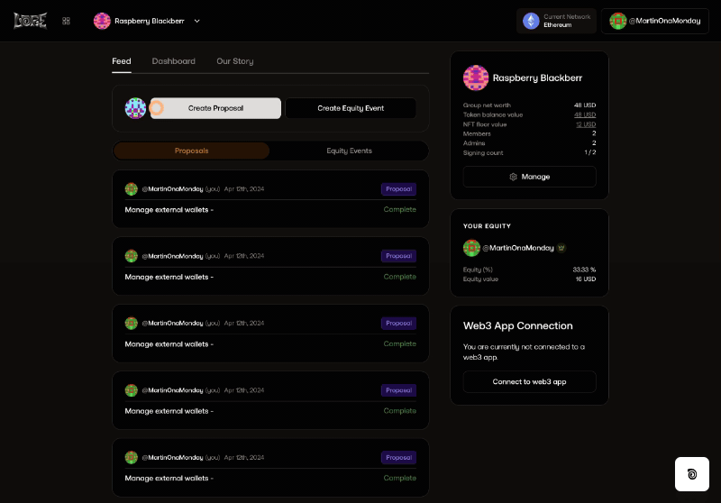 * **Dapp Proposals:** Interact with any web3 app together!